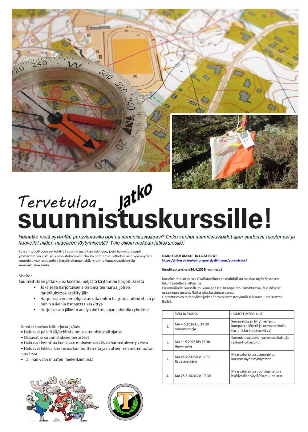 Suunnistusjatkokurssi alkaa 4.5 kello 17.30 Ampumamajalla. Sisältää 4 erilaista taitoharjoitusta . Ilmottautumiset 30.4 mennessä suunnistussivulla. Hinta on 30 Euroa sisältää materiaalin ja…